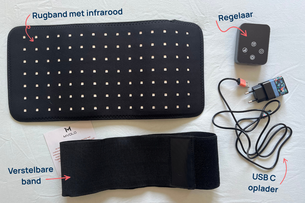 Toch werd ik enthousiast toen ik hoorde dat ik de infrarood rugband van Mvolo mocht proberen. Want wat extra ondersteuning is natuurlijk altijd mooi meegenomen.